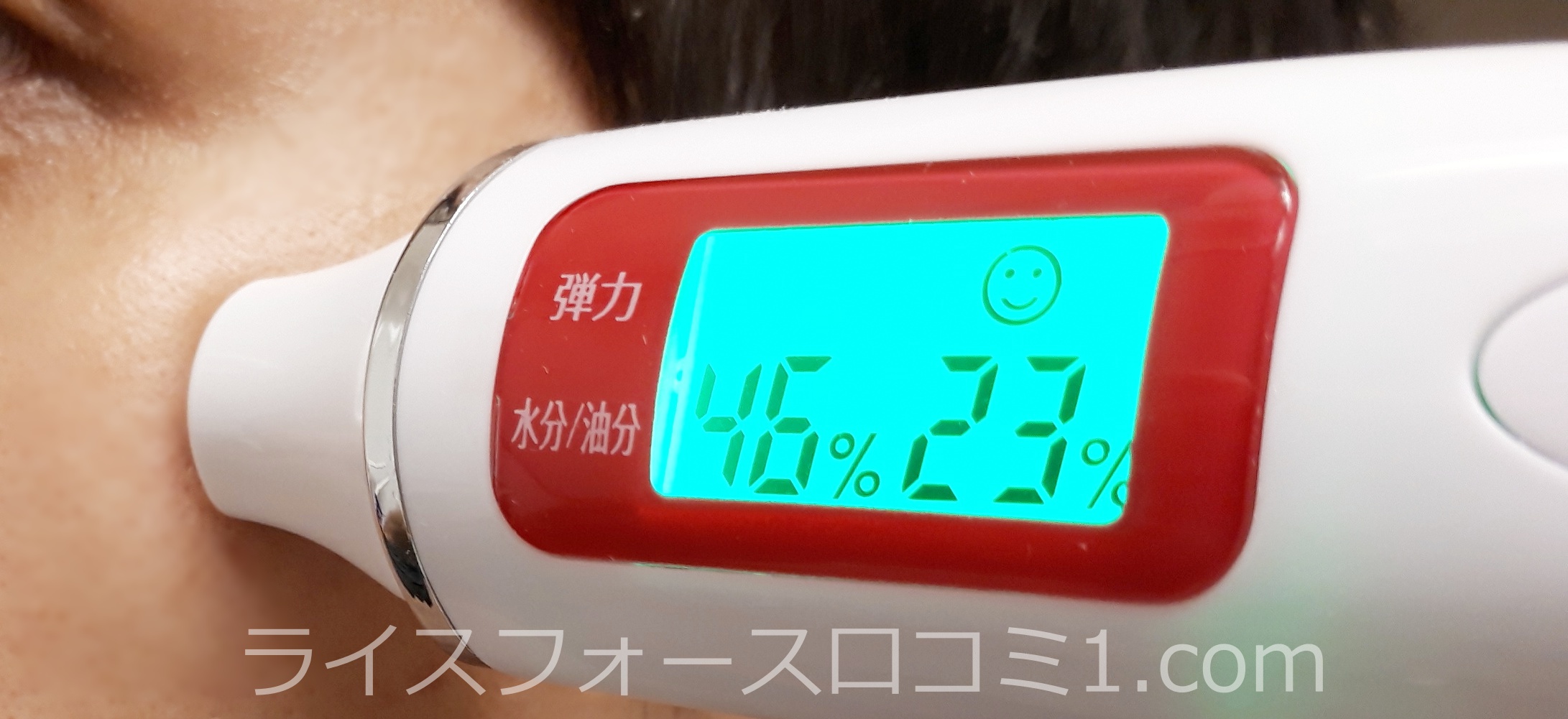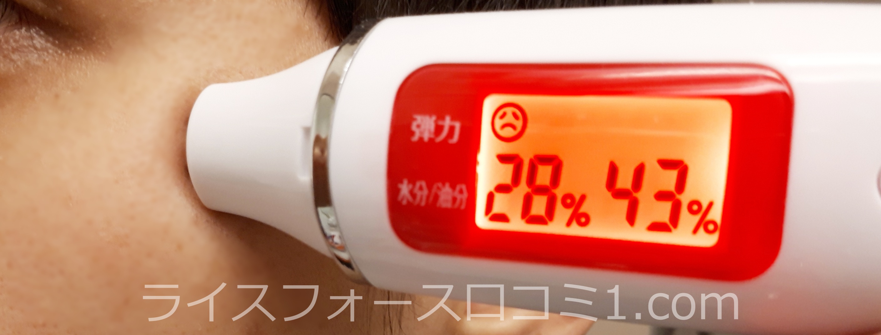 では次に、ライスフォースを使ったあとのお肌を測定してみましょう! 化粧水、美容液を塗ったあと、クリームで蓋をしました! その結果…