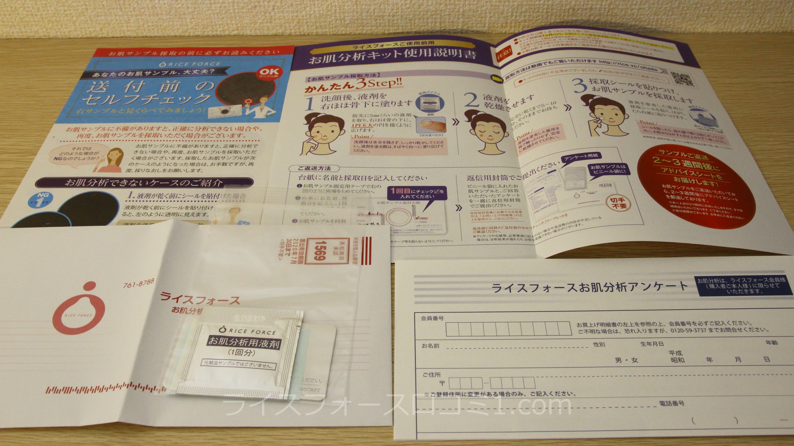 肌分析キットを簡単に説明すると、30日ライスフォースを使ったあと、専用液剤をお肌に塗り、肌に貼った採取シールをライスフォースに送ります。すると、約2週間ほどで結果が返ってくるんです!