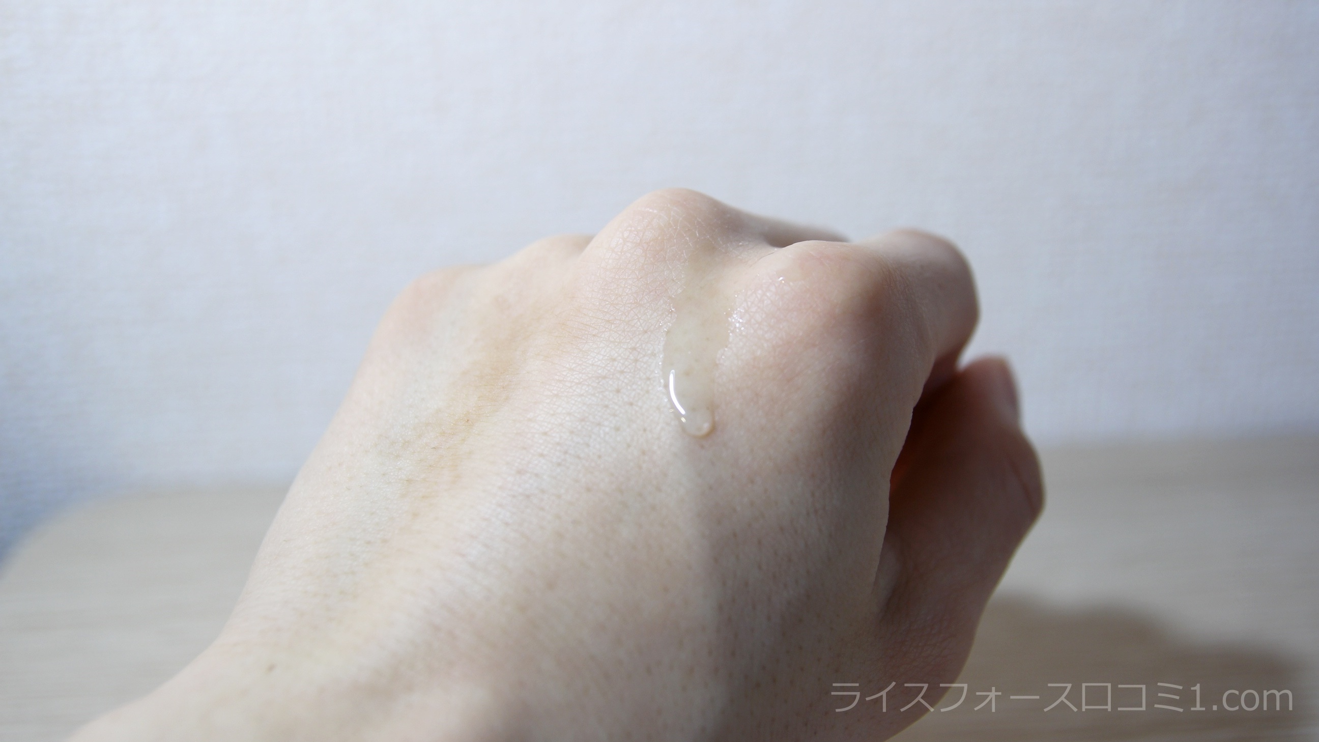 口コミにあったとおり、少しトロみがありますが、サラッとして気持ちいいです。手に乗せたらスッと流れていきました。