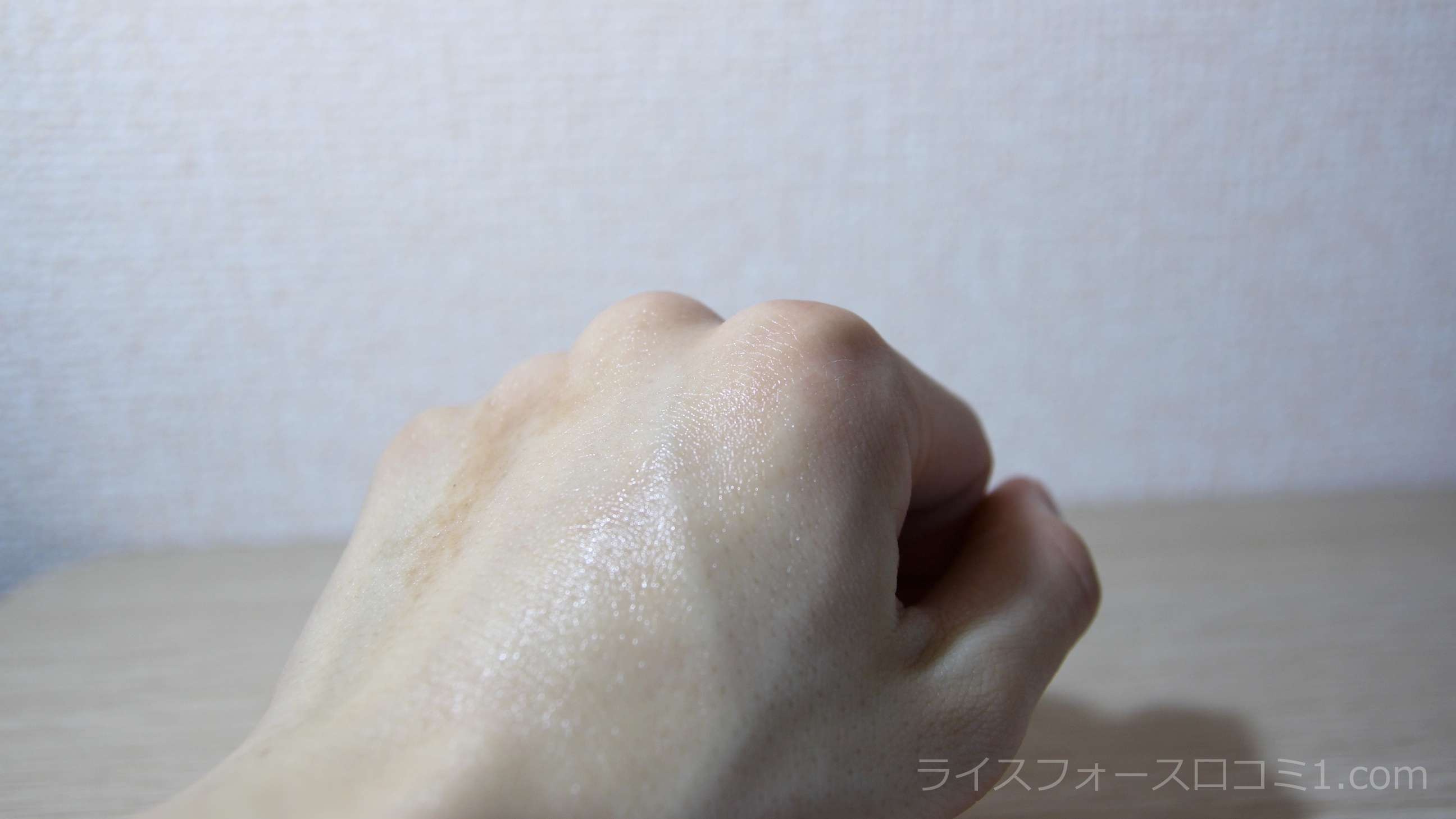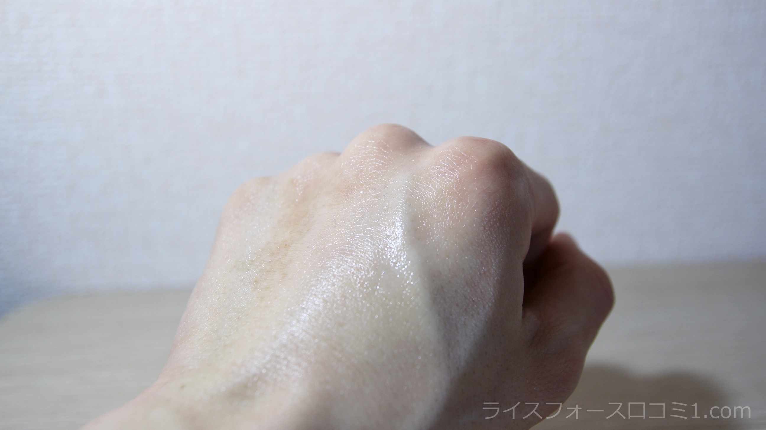 次に、ライスフォースにはお肌に付けてすぐに表面がサラッとする、という特徴があります。これだけ聞くと「保湿してないの?」と思うかもしれませんが、違います!