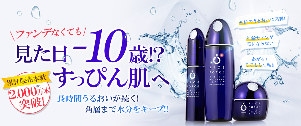 ライスフォースは、肌が水分を保つ効果を厚生労働省に唯一認められた成分であるライスパワーエキスNo.11をたっぷり配合しています。だからこそ発売から2000万本以上も売れており、多くの人に愛されています。