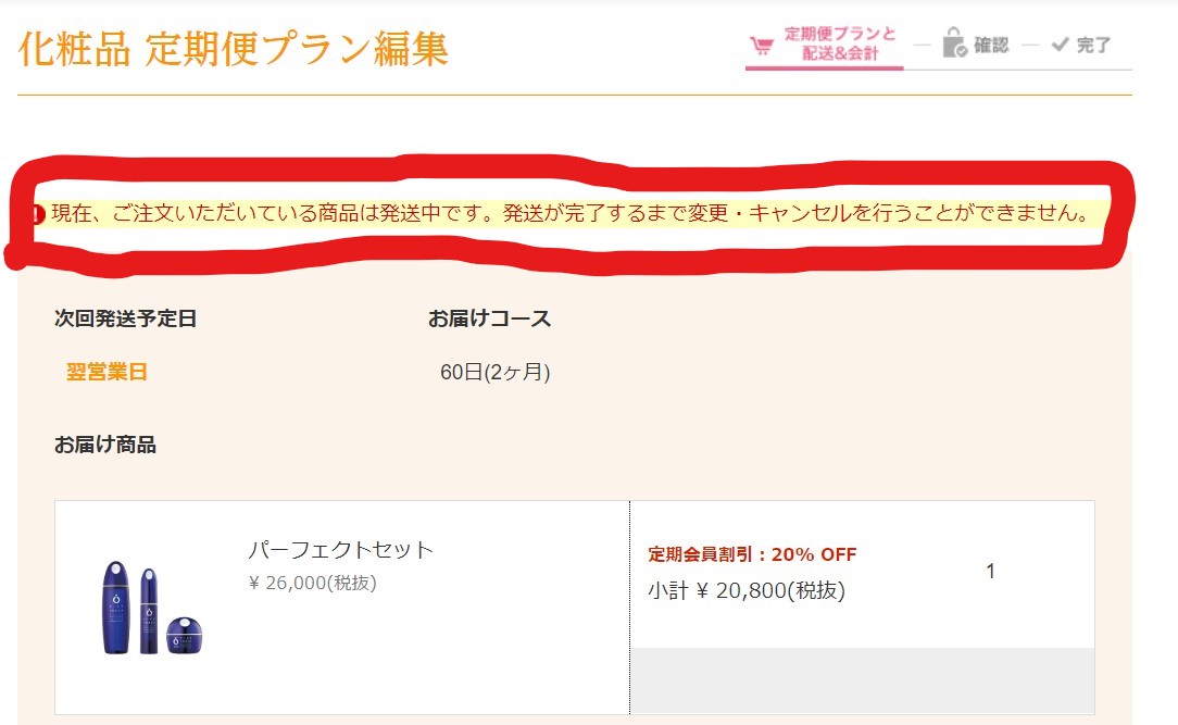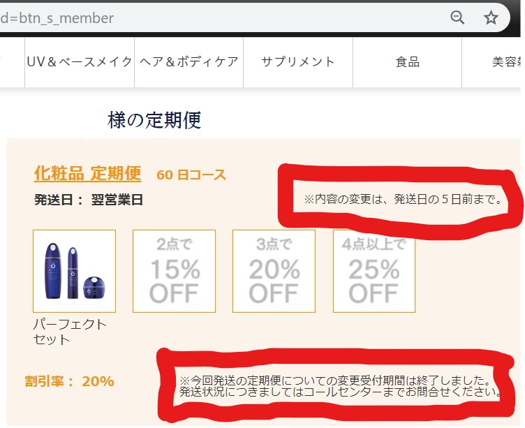 次の発送日まで時間の余裕が無い場合は、電話をするかマイページの定期便ページから操作するのが間違いないです!