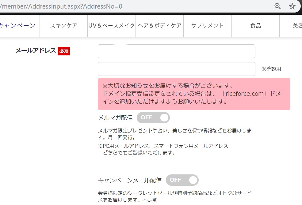 から「メルマガ配信」もしくは「キャンペーンメール配信」をOFFにすればOKですよ!