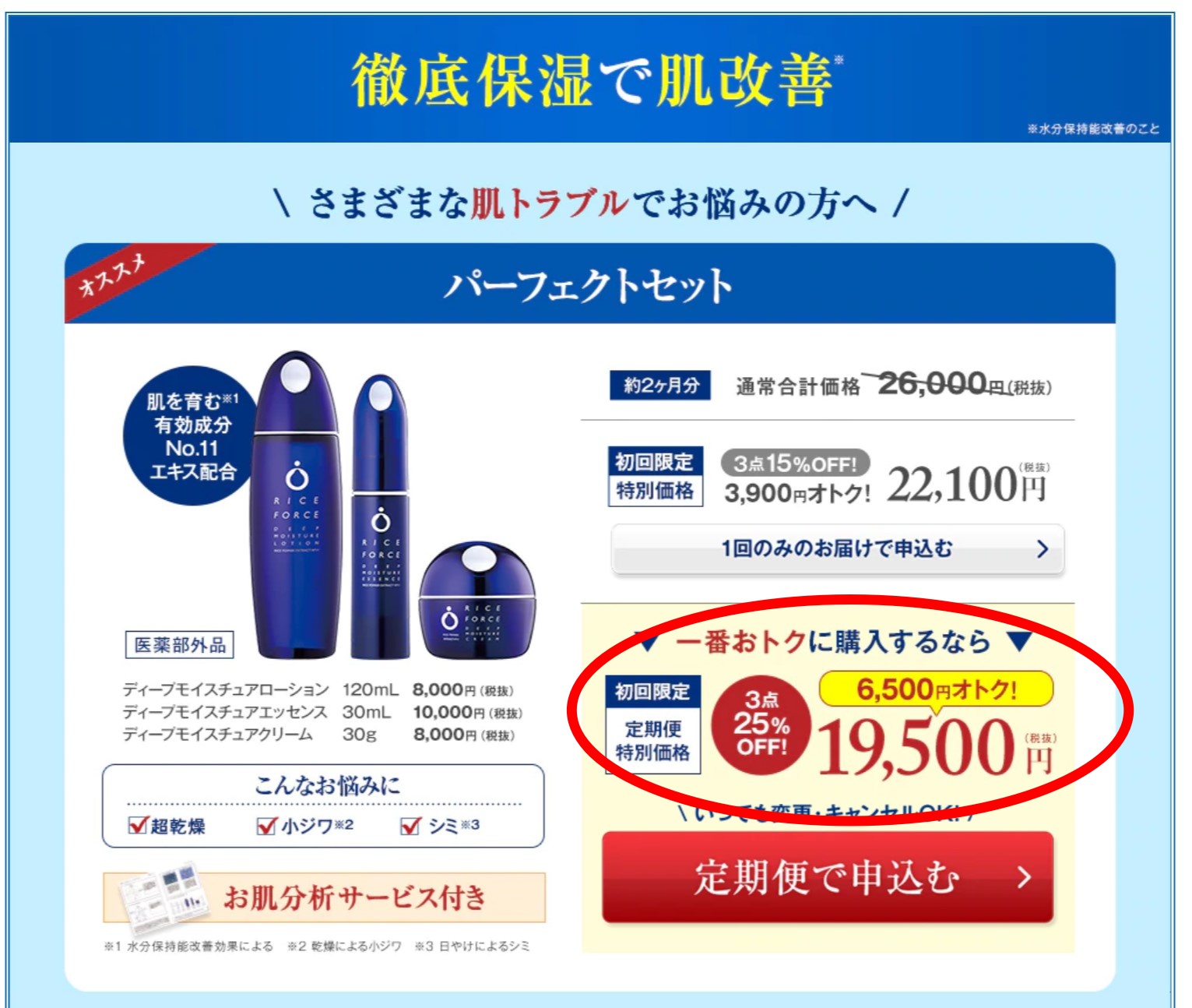 これだけではありません! 3点のパーフェクトセットを定期便で購入すれば、初回のみ、なんと