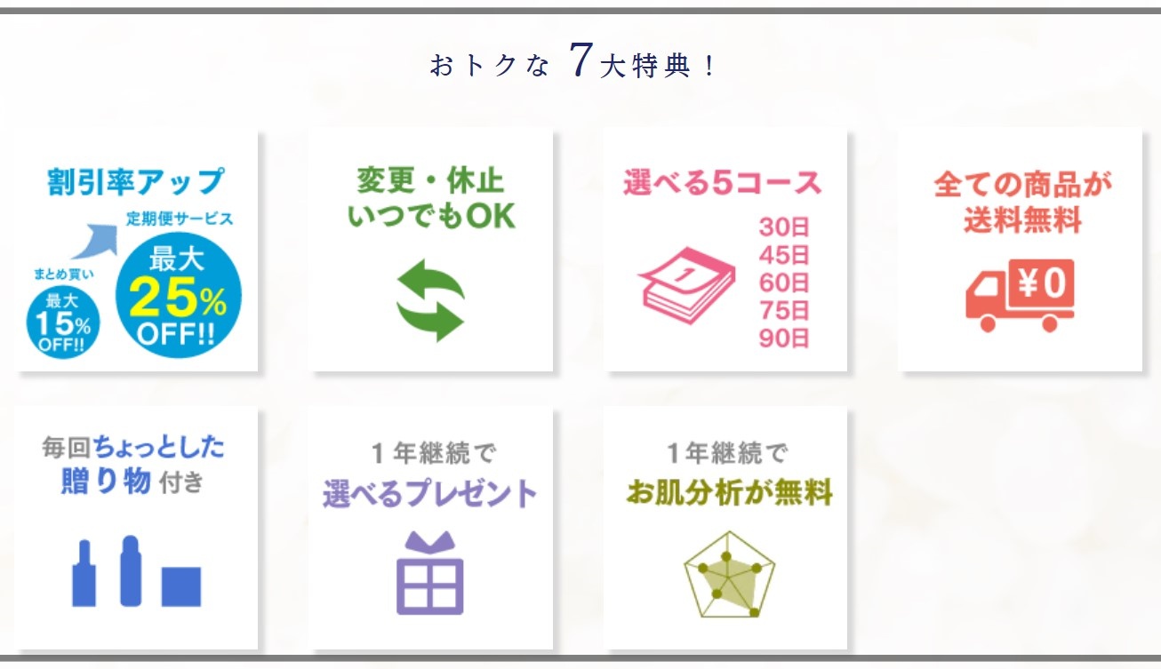 定期便サービスにはなんと7つもの特典が絶対についてきます!