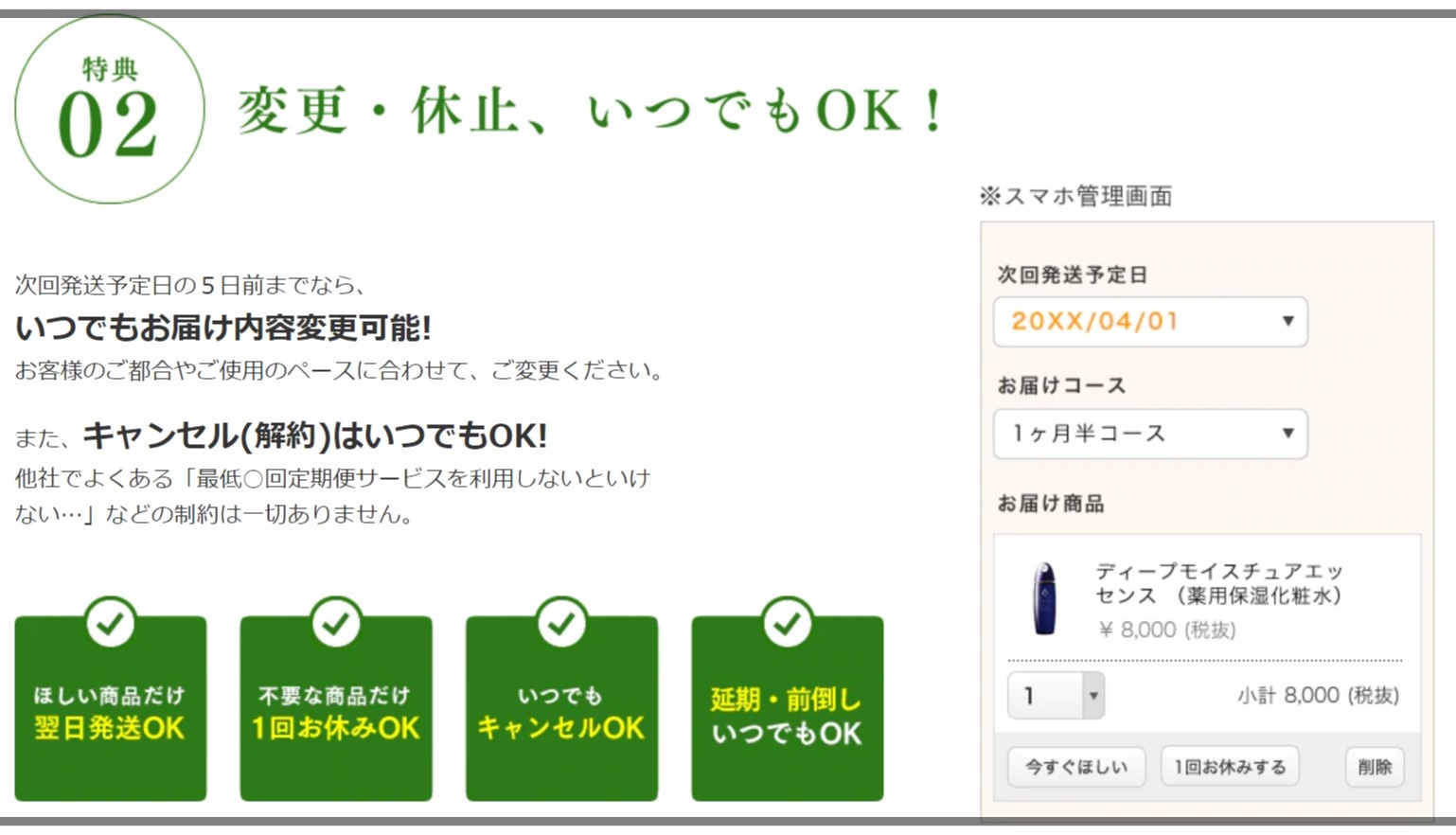- いつでも変更・休止ができる(体調不良で使えなかったりしばらく家を不在したりするときに嬉しいですね)
