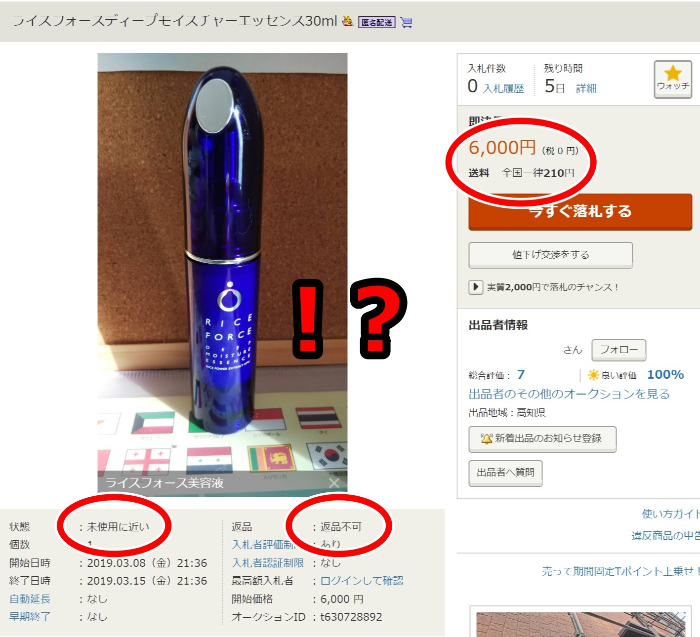 やはり個人出品のサイトで化粧品を買うのはリスクが多すぎますね。確かに安い値段で買うことはできるかもしれませんが、不安要素がありすぎます。ライスフォースを買うなら、公式HPで注文したいですよね!