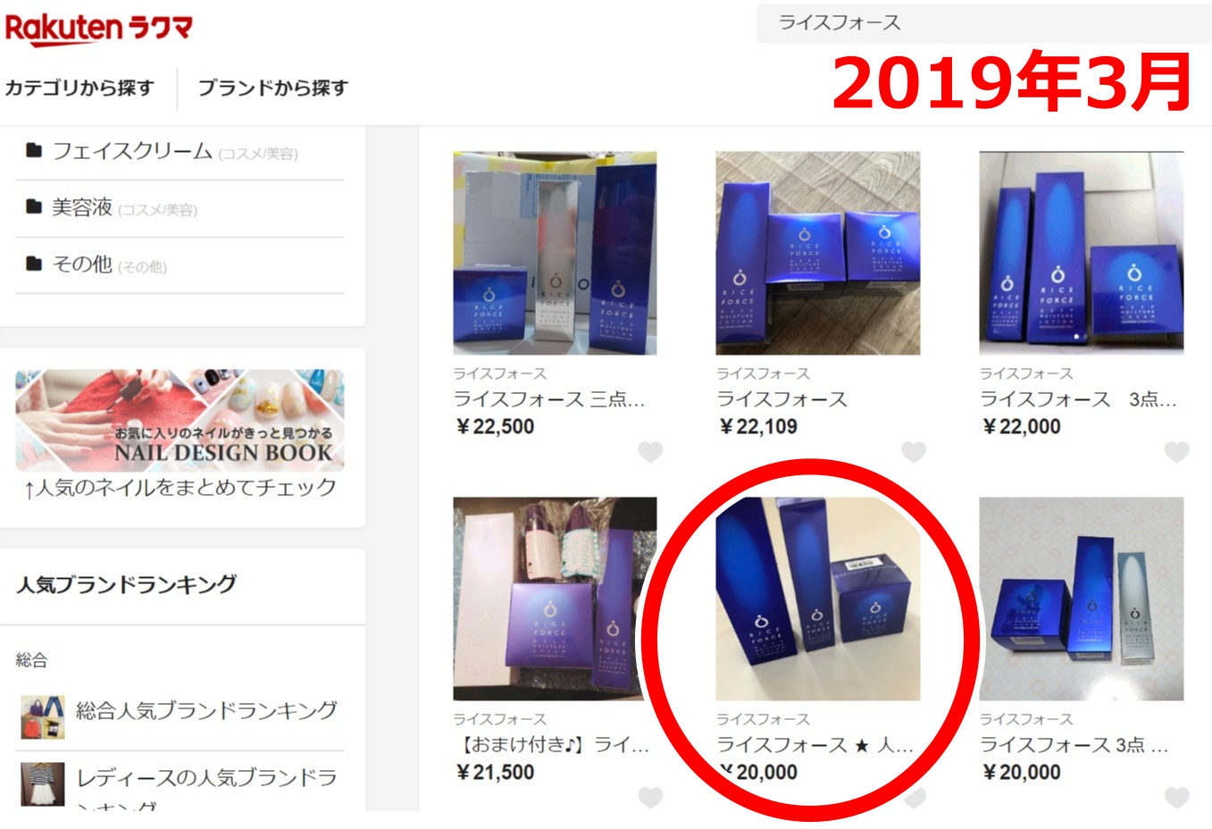 ライスフォースはメルカリやヤフオク(ヤフーオークション)やラクマでも出品されています。それぞれのサイトで検索、調査してみました。