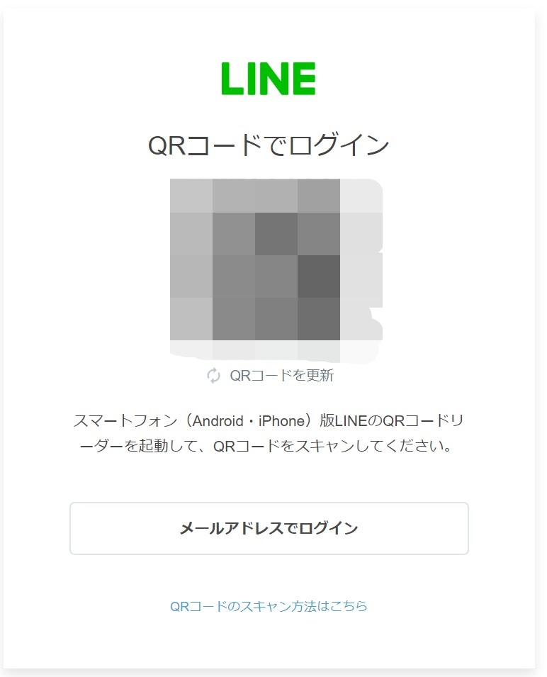 すると、パソコンの画面にQRコードが表示されます。これをスマートフォンのLINEのQRコードリーダーで読み取ります。