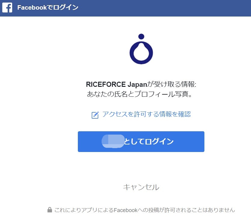 ログイン画面でfacebookのボタンを押すと次のような画面に移ります。